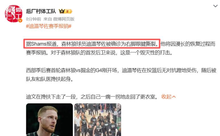 据好意思记Rob Murrows报谈,音问东谈主士走漏,迪文岑佐遇到右脚跟腱扯破!不外不久之后,这位NBA记者就删除了动态,可能还在恭候官方的音问!