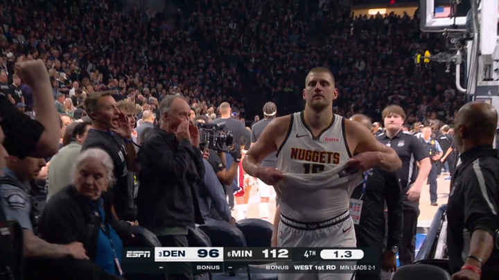 约基奇在丹佛掘金队与明尼苏达丛林狼队首轮系列赛中的发达,并莫得达到预期的发达。动作三届老例赛MVP,一届总决赛MVP,约基奇在2025-26赛季的老例赛打出了场均27.7分,12.9个篮板,10.7次助攻,投篮射中率56.9%,三分球射中率38%。